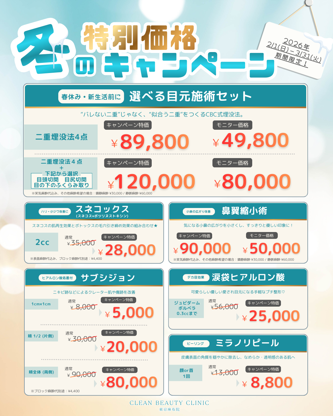 二重・鼻・肌質改善まで...お顔全体をトータルで整える、春前限定のキャンペーンとなっております!