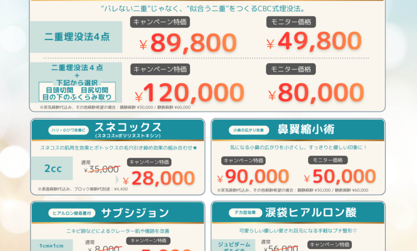 二重・鼻・肌質改善まで...お顔全体をトータルで整える、春前限定のキャンペーンとなっております!